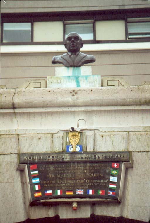 Twintower (oben rechts), der Zugang zur Haupttribüne und die beiden Twintower sowie die von der Queen gestiftete Gedenktafel aus Anlass der